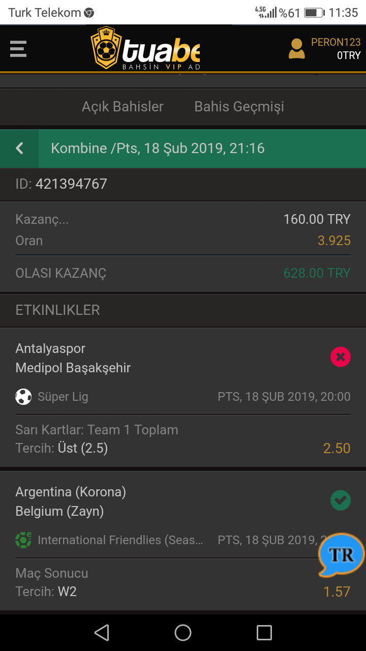 Tuabet sitesi bahisimi kaybetti olarak gosterdi antalyaspor başakşehir maçında ev sahibi team 1 2 buçuk üstü sarı kart görür dedim toplam 3 tane sarı kart gördü ama bahisimi kaybetti olarak sisteme işlediler sorunumu çözemediler bu sorunun çözülmesini istiyorum artik
